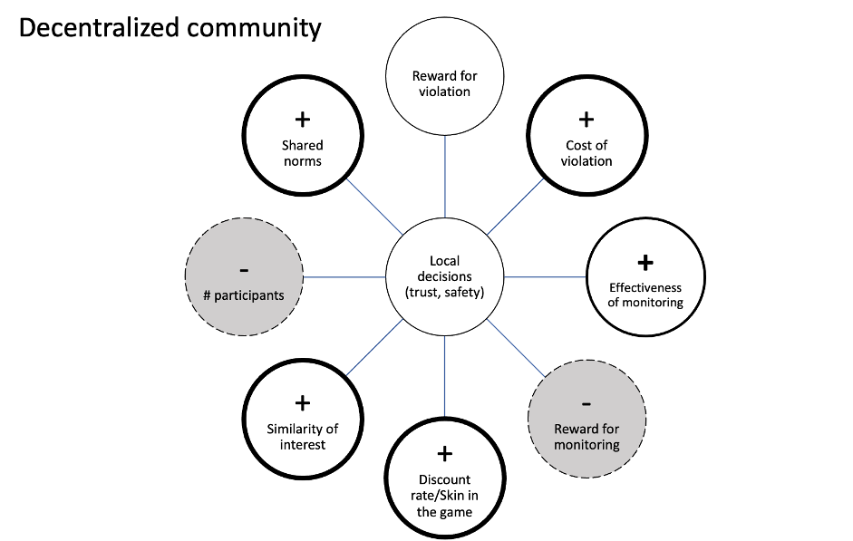 In small local communities, everyone knows everyone and can just gather together to make decisions, in global communities people’s identities may not be known and they may even understand language in different ways due to cultural backgrounds.